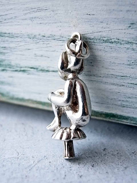 大きなとんがりお耳の妖精ピクシーのヴィンテージチャームです。 イギリス・コーンウォール地方の森の中に住む妖精ピクシー。 きのこの上に膝を抱えてちょこんと座っています。 やや大きめでしっかりとした重さがあります。 大きさは2,5×1,3cm 別売りのチェーン(現行品)・ブレスレット(ヴィンテージシルバー)を ご希望の場合は下記をクリックして下さい。 *チェーン *ブレスレット |