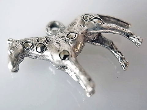 黒いダイヤとも呼ばれるマーカサイトで飾られた馬のヴィンテージチャームです。