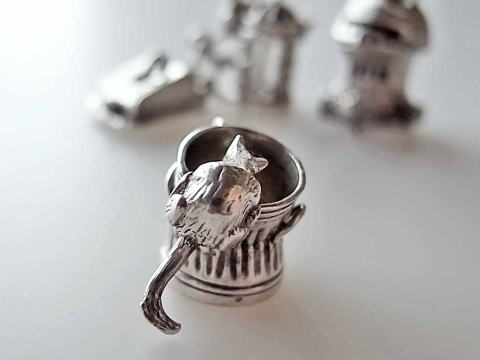 | ヴィンテージシルバーチャーム・ネコとゴミ箱・405 ¥3360 |